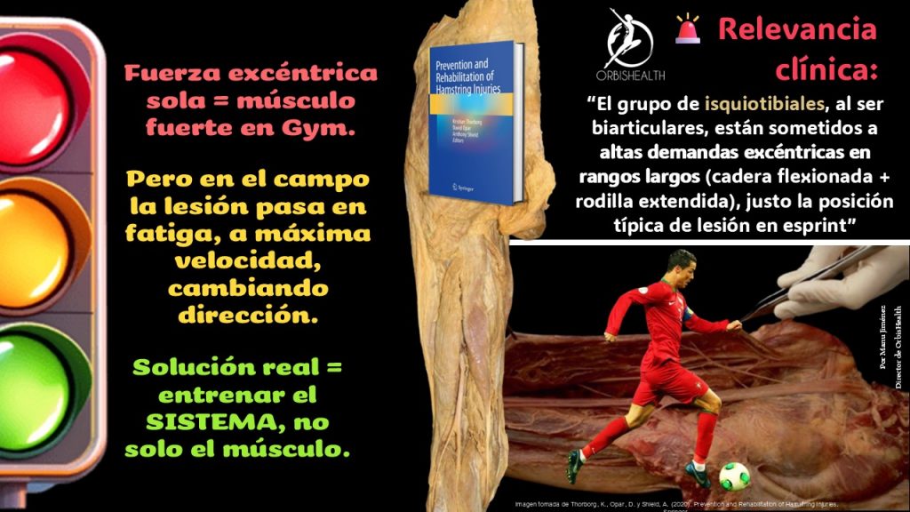 Un jugador puede tener gran fuerza lenta en curl femoral, pero si no tiene control excéntrico rápido a alta velocidad, sigue estando en riesgo de lesión.